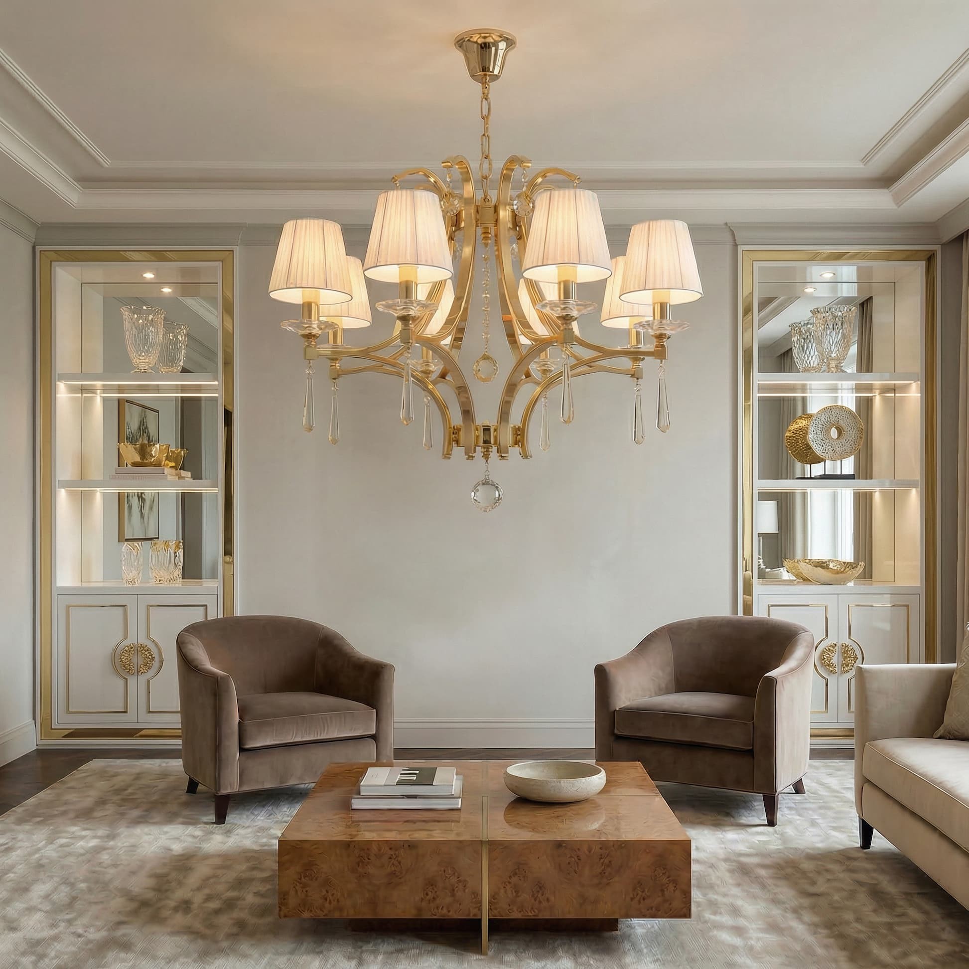 Osiem punktów świetlnych, będących źródłem blasku żyrandola VENISIA W8, efektownie podkreśli eleganckie aranżacje salonów, sypialni czy jadalni, w których oświetlenie pełni bardzo ważną rolę. Jego klasyczny styl i złota oprawa dodatkowo uwydatnią wytworny charakter dodatków danej przestrzeni, a wysokiej klasy kryształowe ozdoby obdarzą je nutą bogactwa i blichtru.